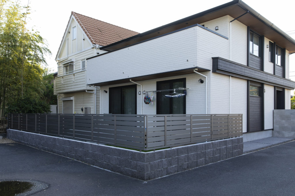 建物の外観に合わせ、シンプルなデザインのフェンスを採用。プライバシーを守りつつ、圧迫感のない軽やかな印象に仕上げています。